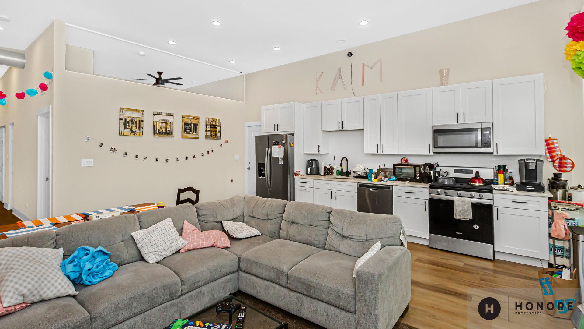 Spacious 4-Bed/2-Bath apartment is right next to UIC! NEW FULL GUT REHAB! Luxury upgrades include: In-unit washer/dryer, central air + heat, new large kitchen has new stainless steel appliances, durable quartz countertops, designer cabinetry and tile backsplash! 11.5' tall ceilings and seamless plank flooring throughout, extra large living room windows, remote controlled ceiling fans and more!