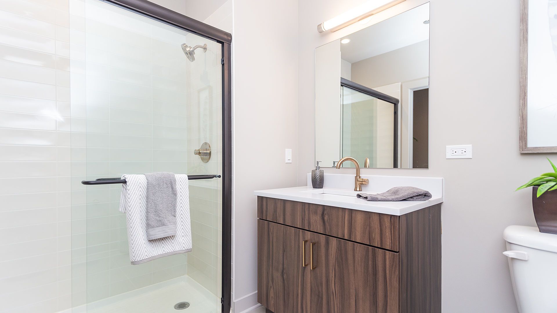 • Stand-up shower with glass enclosure