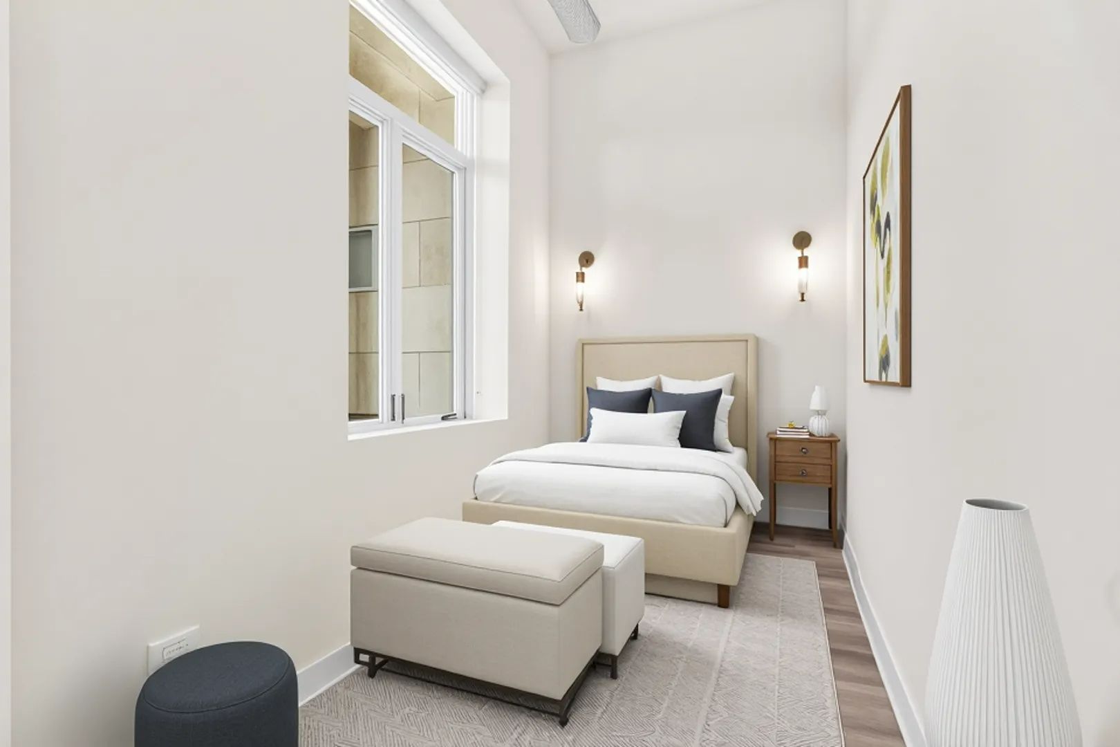 We've transformed the iconic Masonic Temple into a 30-unit residential building with a host of on-site conveniences, including a lobby lounge, a business center with private offices & conference room, a fully-equipped fitness center, an elevator, bike storage, and a keyless entry system featuring the ButterflyMX intercom system, Salto smart locks, and mobile access! Complemented by clean, contemporary finishes, this development breathes fresh life into a piece of history, offering an inviting and modern living experience.