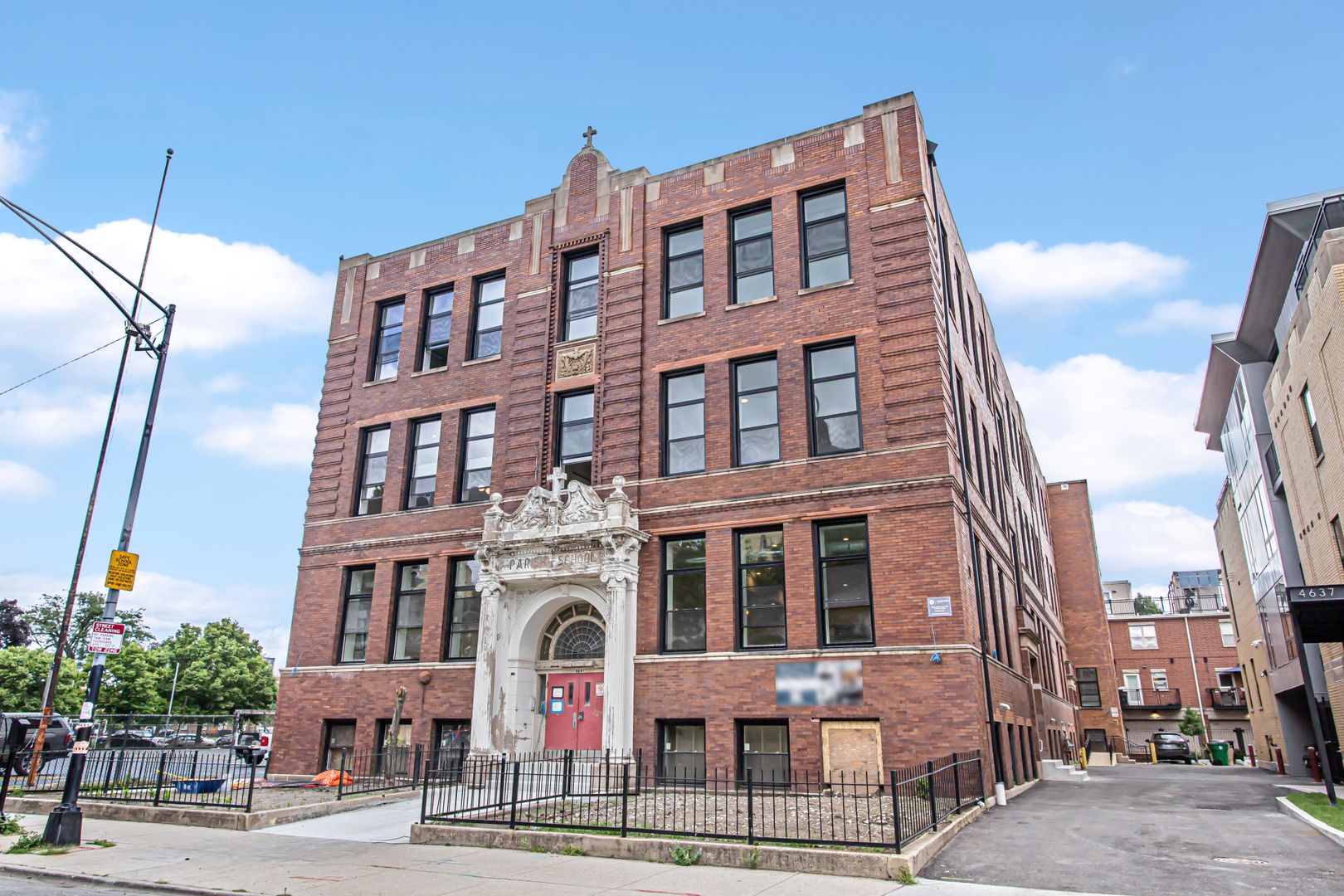 Nestled in the heart of Ravenswood, this historic renovation gave new life to the iconic Our Lady of Lourdes Catholic School Building. The property features 42 residential units and outdoor parking. Residents can look forward to an array of amenities, including a resident lounge with kitchenette and ample seating, a focus space for a place to work outside the office or apartment, a fully equipped fitness room, secure bike storage, a convenient elevator, keyless entry and intercom system that streamlines deliveries and guest access, all with stunning finishes!