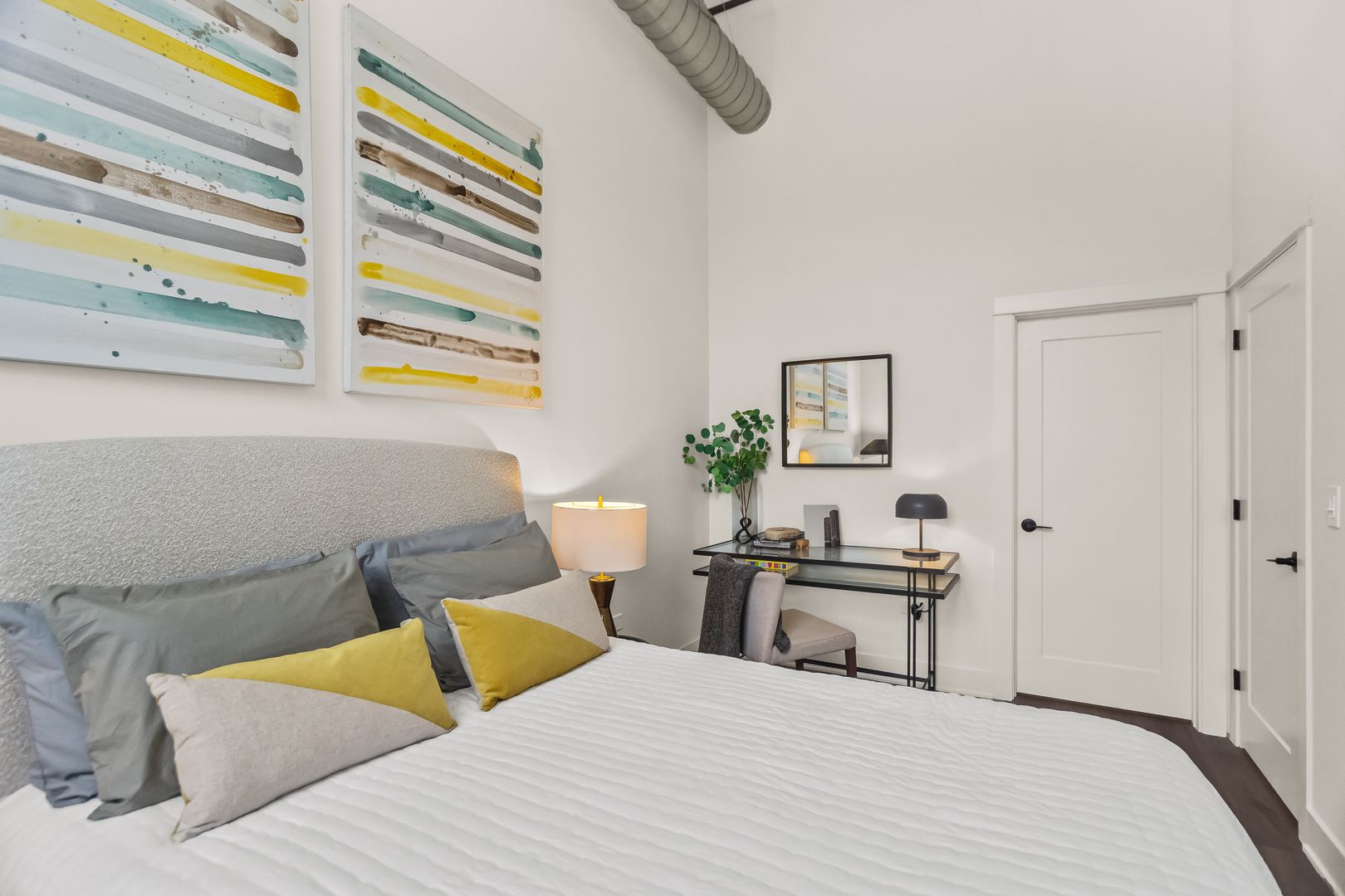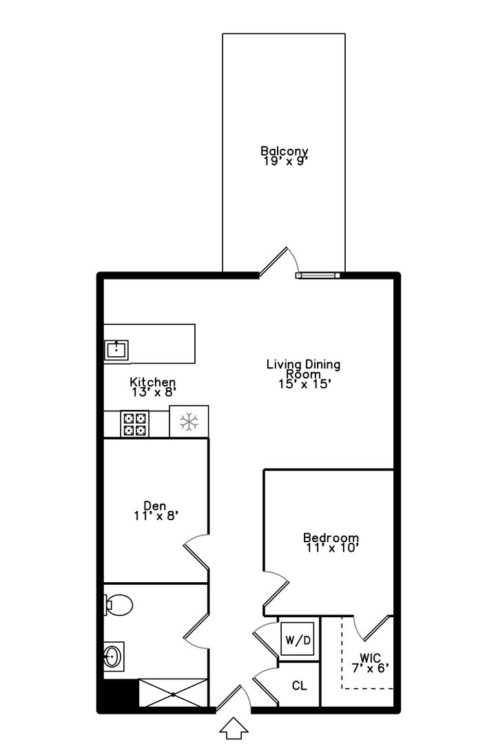 Beautifully rehabbed 1 bedroom + den | 1 bathroom apartment with skyline views and private balcony available at The Evergreen Lofts with early summer availability & flexible move in date!