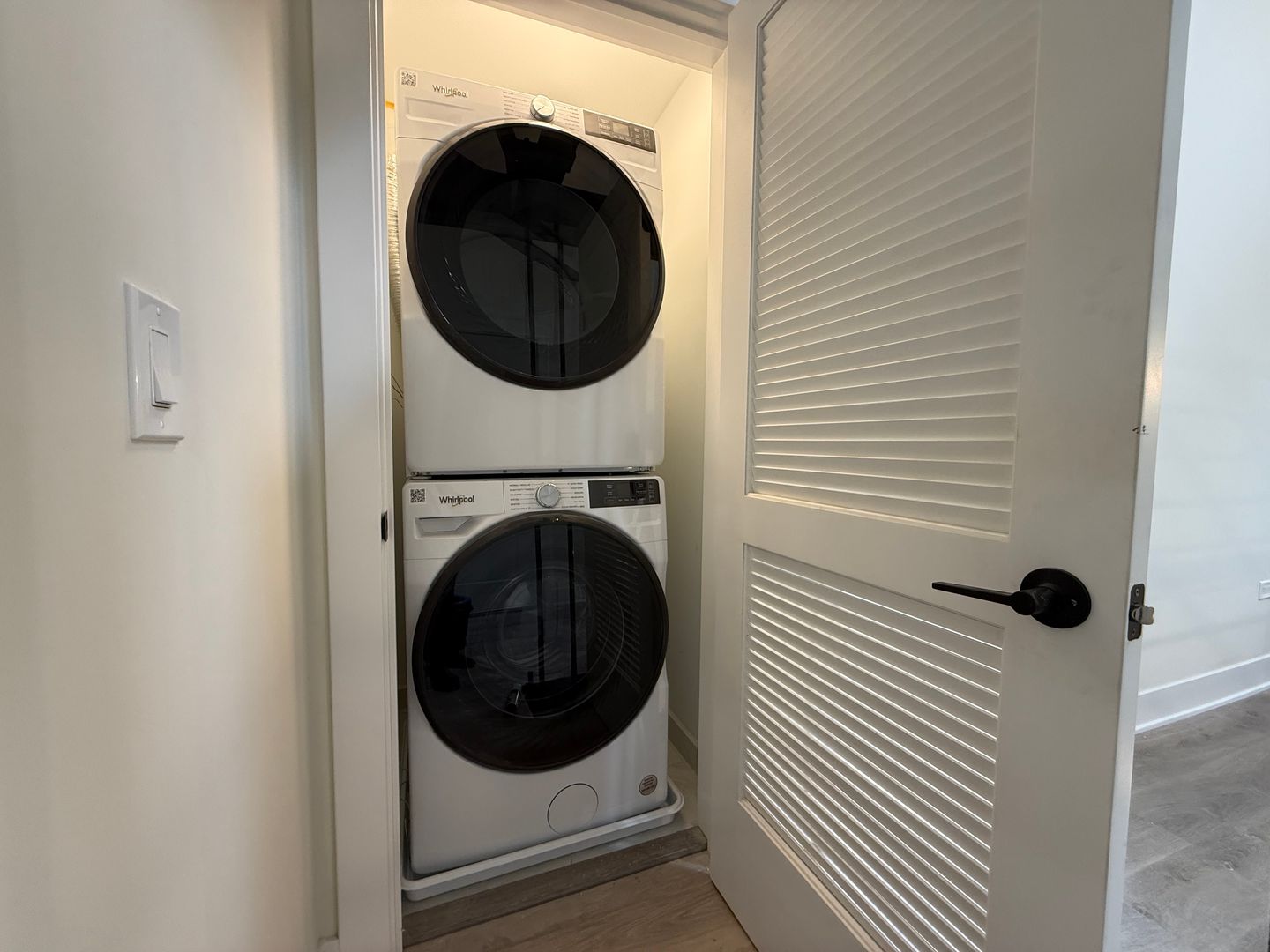 This spacious, duplex unit features high ceilings, natural light, stainless steel appliances, slim-shaker cabinetry with quartz countertops, front-loading washer & dryer, central heat & air, smart thermostats, roller shades, and more!