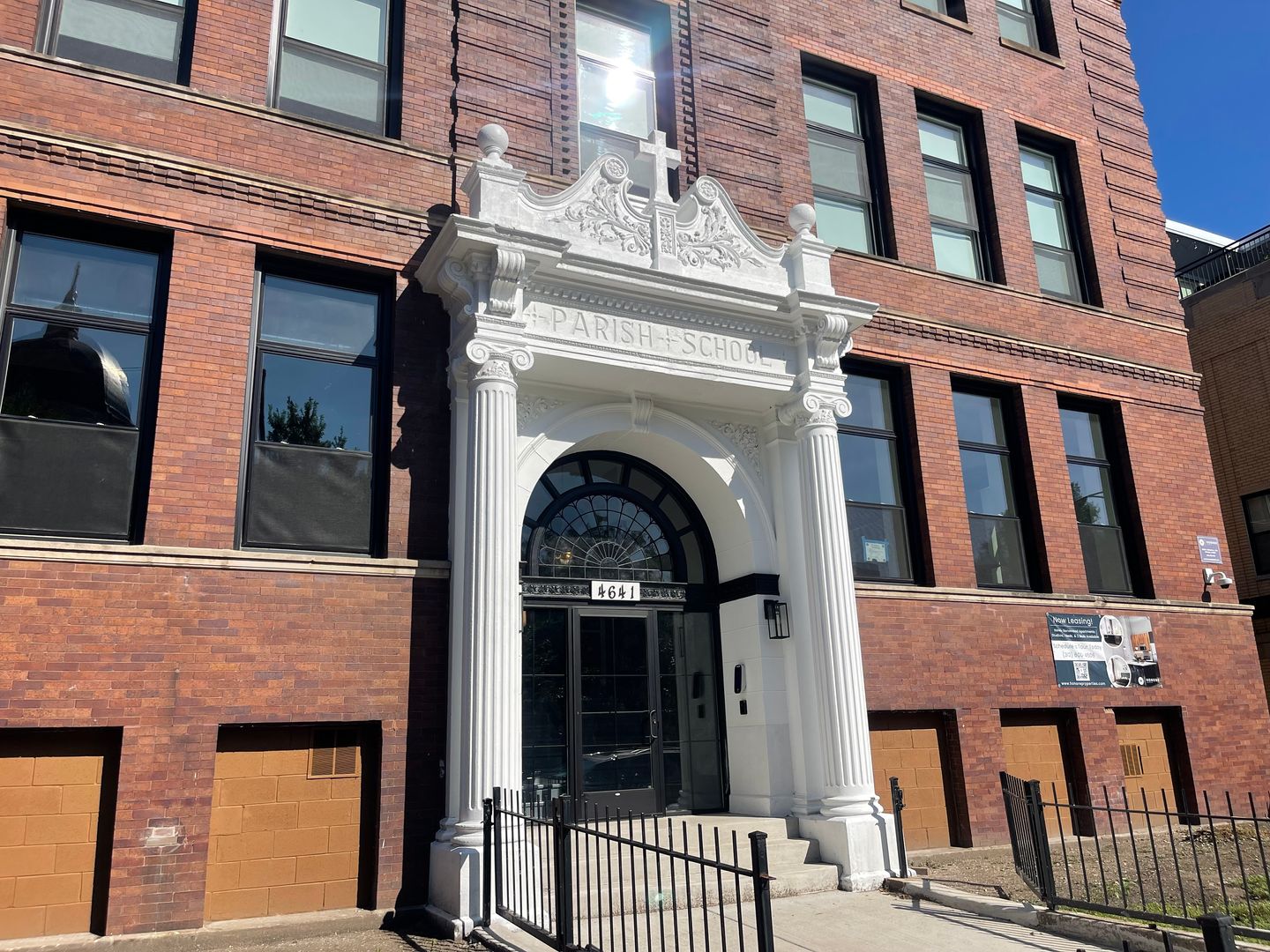 Nestled in the heart of Ravenswood, this historic renovation gave new life to the iconic Our Lady of Lourdes Catholic School Building. The property features 42 residential units and outdoor parking. Residents can look forward to an array of amenities, including a resident lounge with kitchenette and ample seating, a focus space for a place to work outside the office or apartment, a fully equipped fitness room, secure bike storage, a convenient elevator, keyless entry and intercom system that streamlines deliveries and guest access, all with stunning finishes!