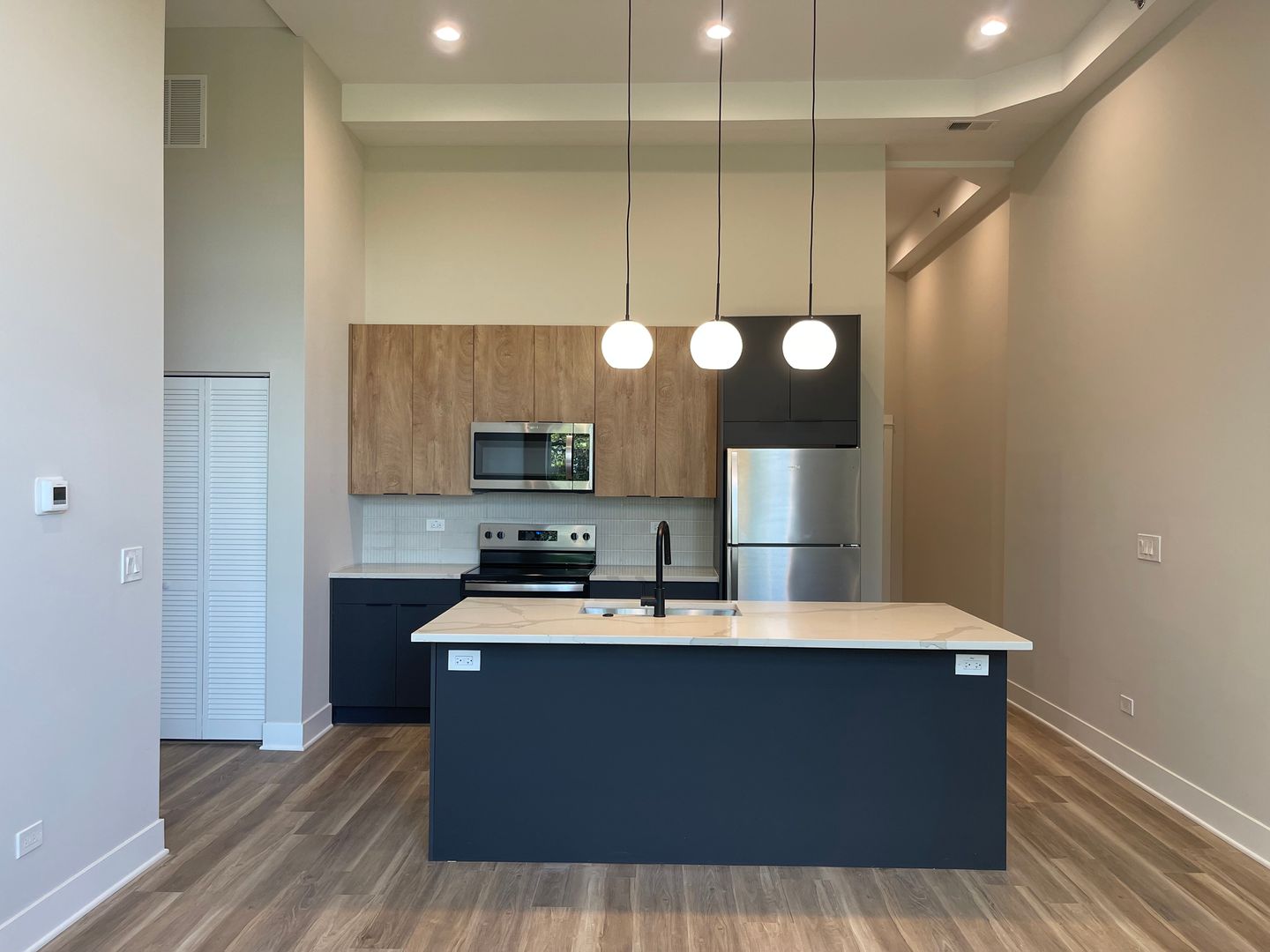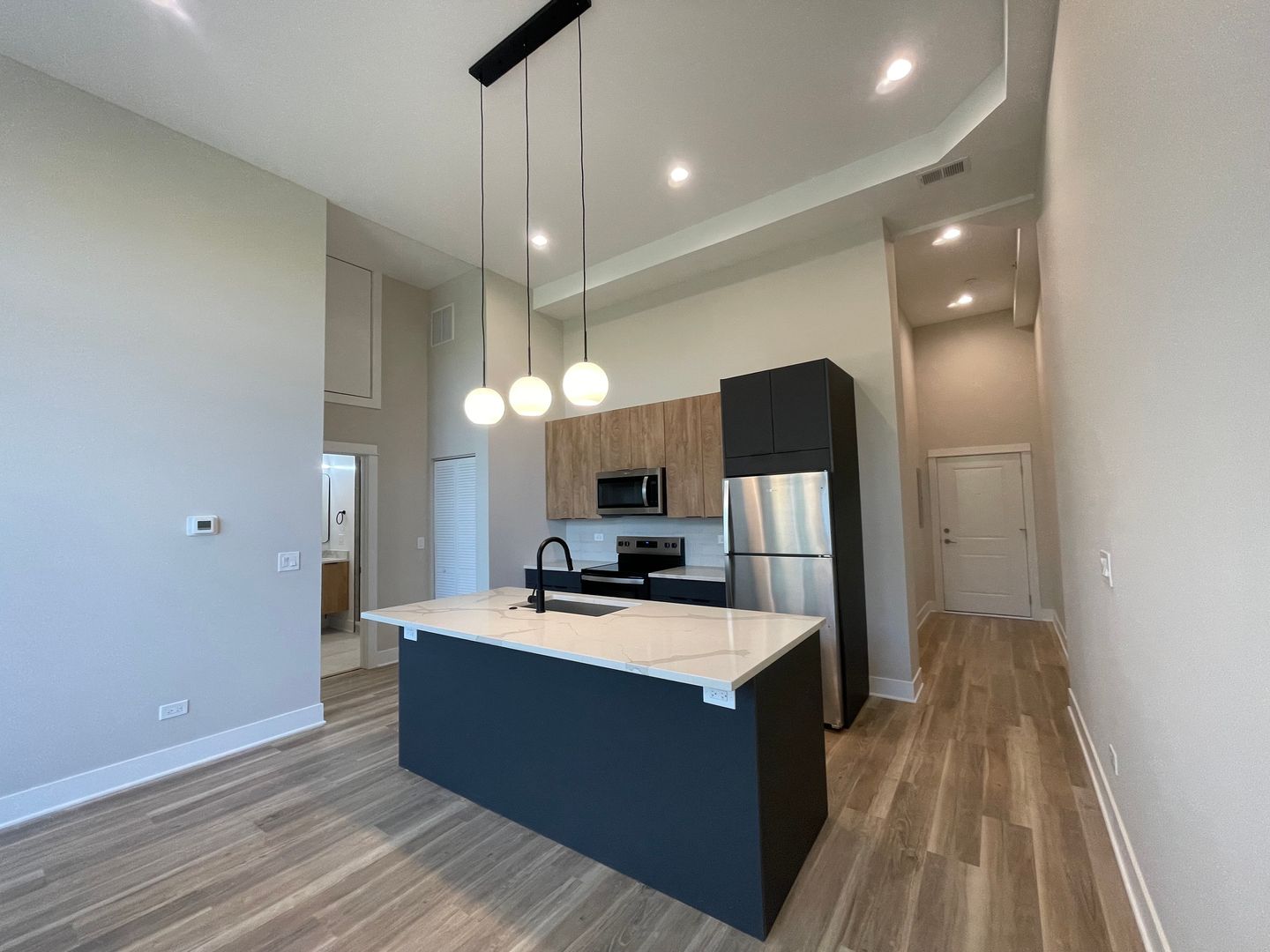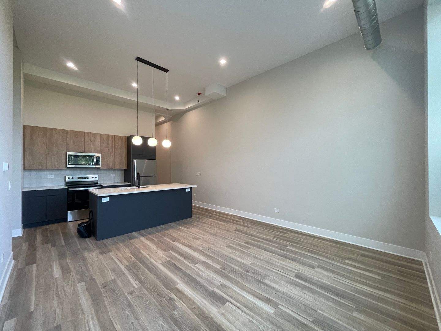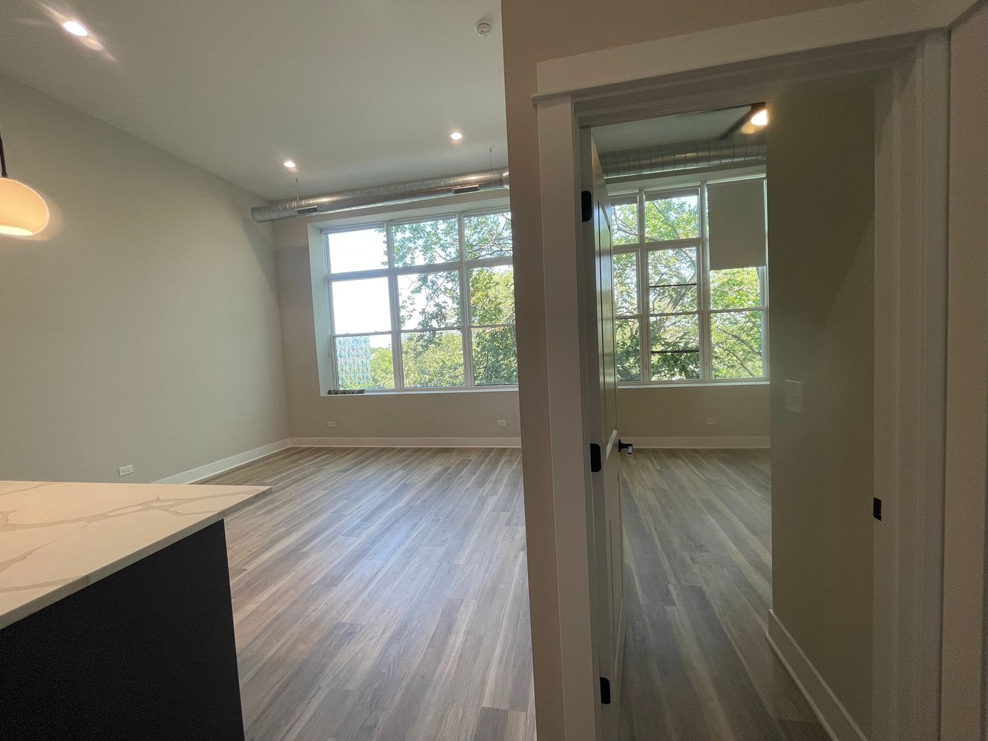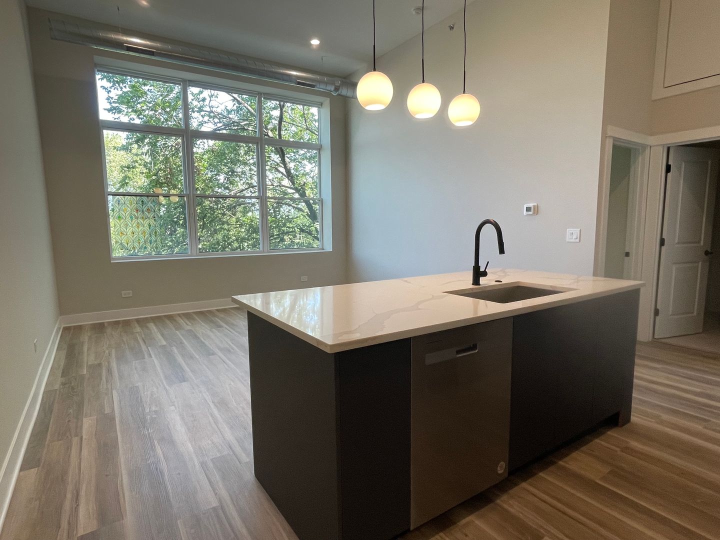 This unit features an open living concept with large breakfast bar, high ceilings, massive windows, and tons of natural light, beautifully complemented by the modern finishes. Other in-unit amenities include stainless steel electric appliances, modern flat-panel cabinetry with quartz countertops, front-loading washer & dryer, central heat & air, luxury vinyl plank flooring, roller shades, and more!