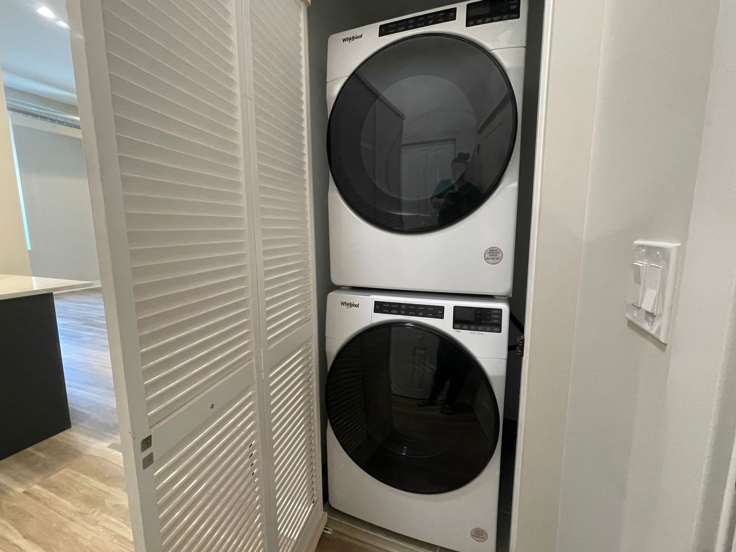 This unit features an open living concept with large breakfast bar, high ceilings, massive windows, and tons of natural light, beautifully complemented by the modern finishes. Other in-unit amenities include stainless steel electric appliances, modern flat-panel cabinetry with quartz countertops, front-loading washer & dryer, central heat & air, luxury vinyl plank flooring, roller shades, and more!