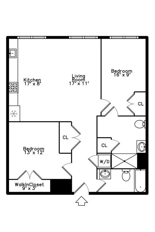 Please note -- floorplans are for marketing purposes only, and are meant to provide an overall view of the apartment layout and approximate square footages. Exact measurements, if needed, should be taken on site within each unit.