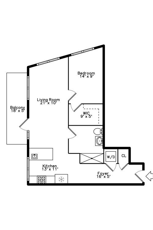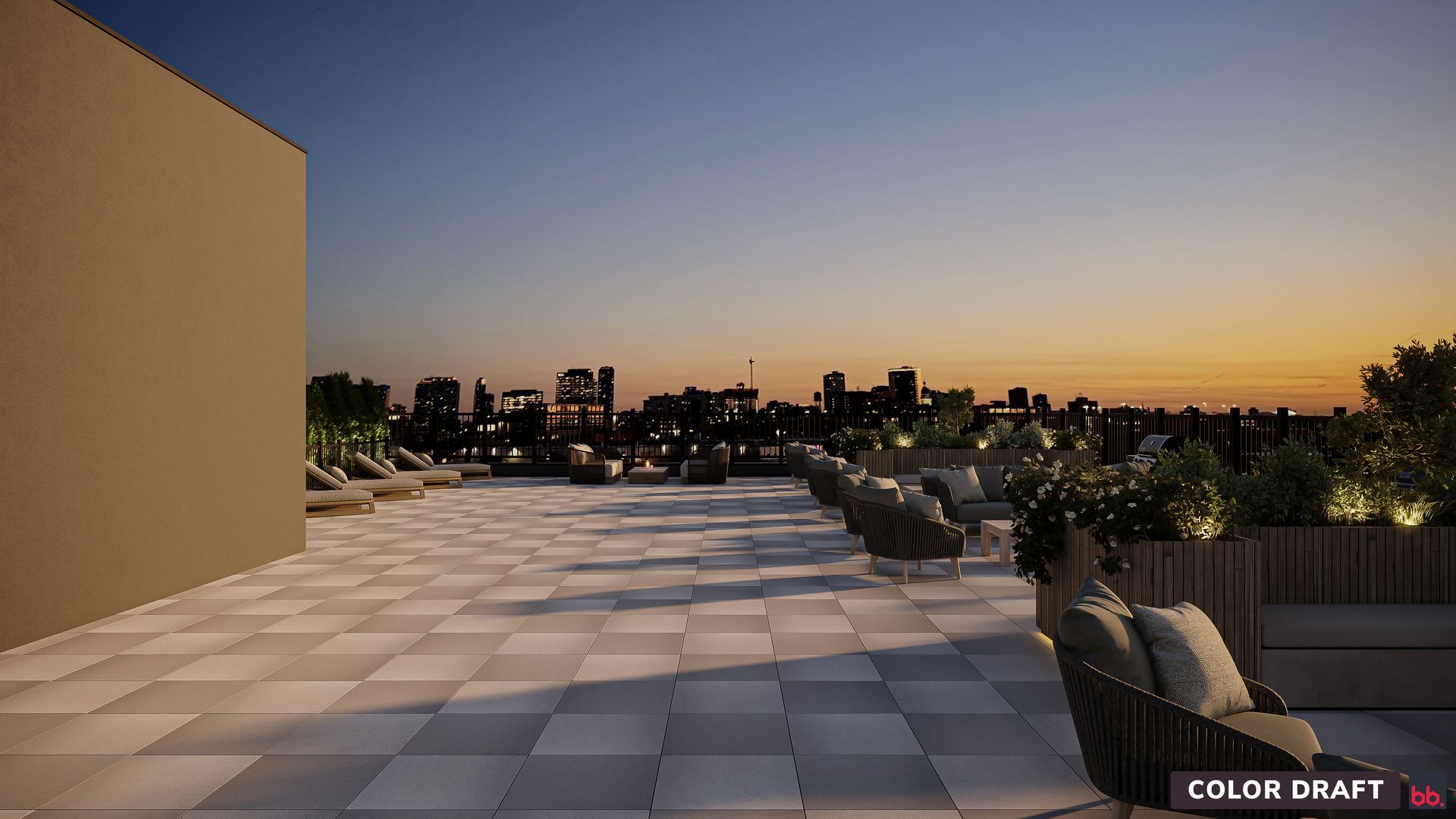 features thoughtfully-designed units ranging in size from studios to 2-bedrooms that feature sleek, modern finishes with open-concept layouts, high ceilings, natural light, stainless steel appliances, front-loading laundry, custom closets, and more. Select units offer expansive private balconies or terraces - perfect for indoor/outdoor city living and all units have access to a shared rooftop deck!